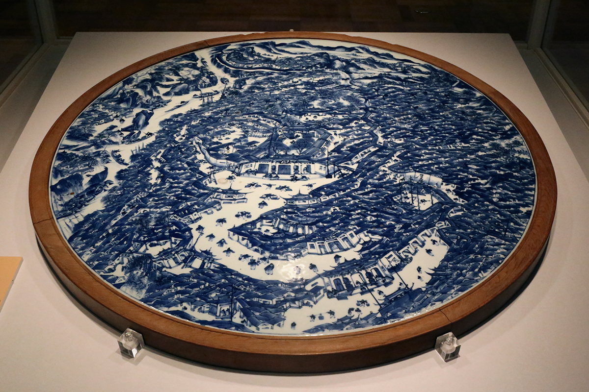 印象的な大皿は《青花御窯廠図磁器板》。景徳鎮で作られたものですが、描かれた図柄も景徳鎮での磁器生産の風景。精緻な描写の素晴らしさだけでなく、清代景徳鎮の生産体制を知る上でも、貴重な資料です。