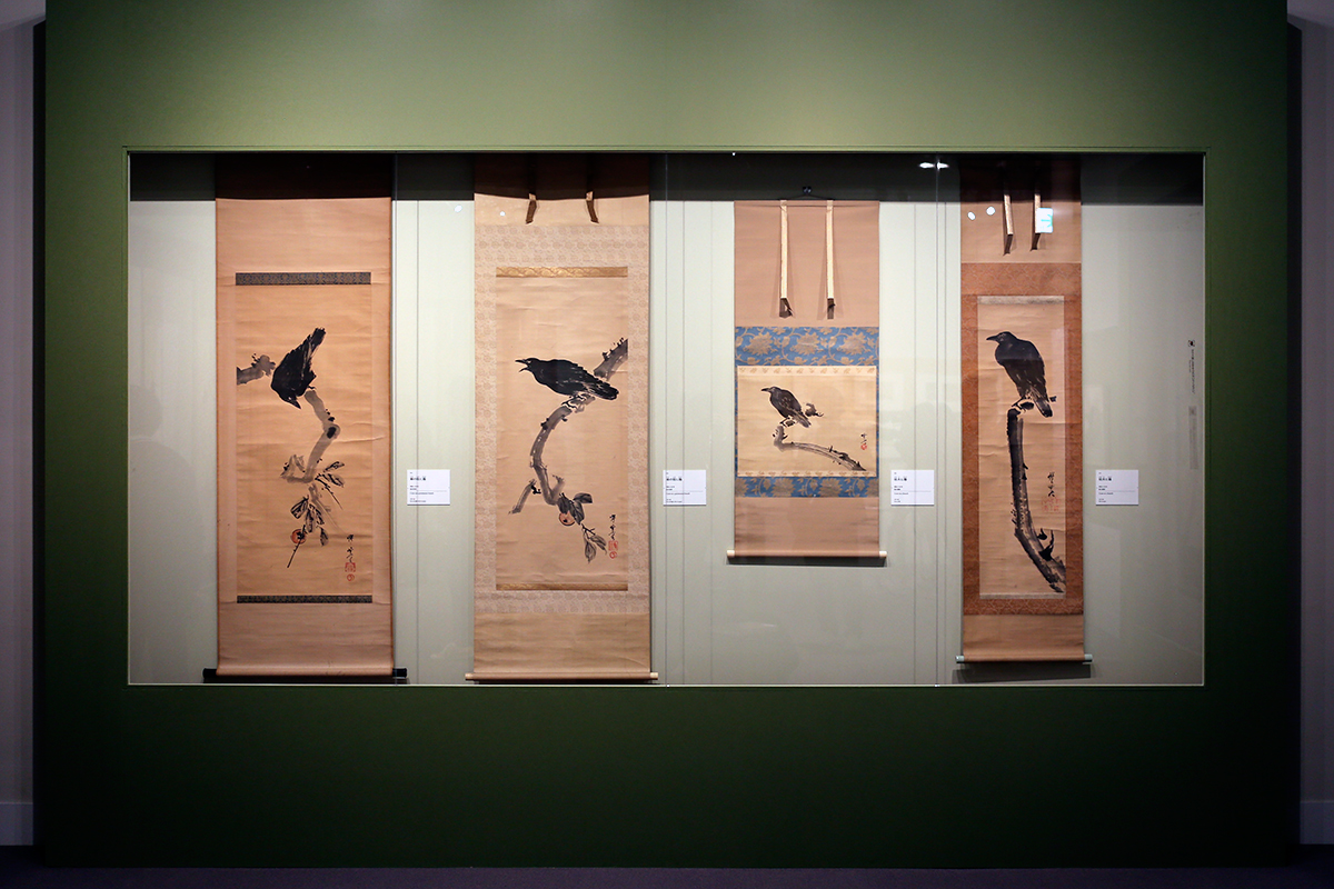 (左から)河鍋暁斎《柿の枝に鴉》明治4-22(1871-89)年 / 河鍋暁斎《柿の枝に鴉》明治4-22(1871-89)年 / 河鍋暁斎《枯木に鴉》明治4-22(1871-89)年 / 河鍋暁斎《枯木に鴉》明治4-22(1871-89)年