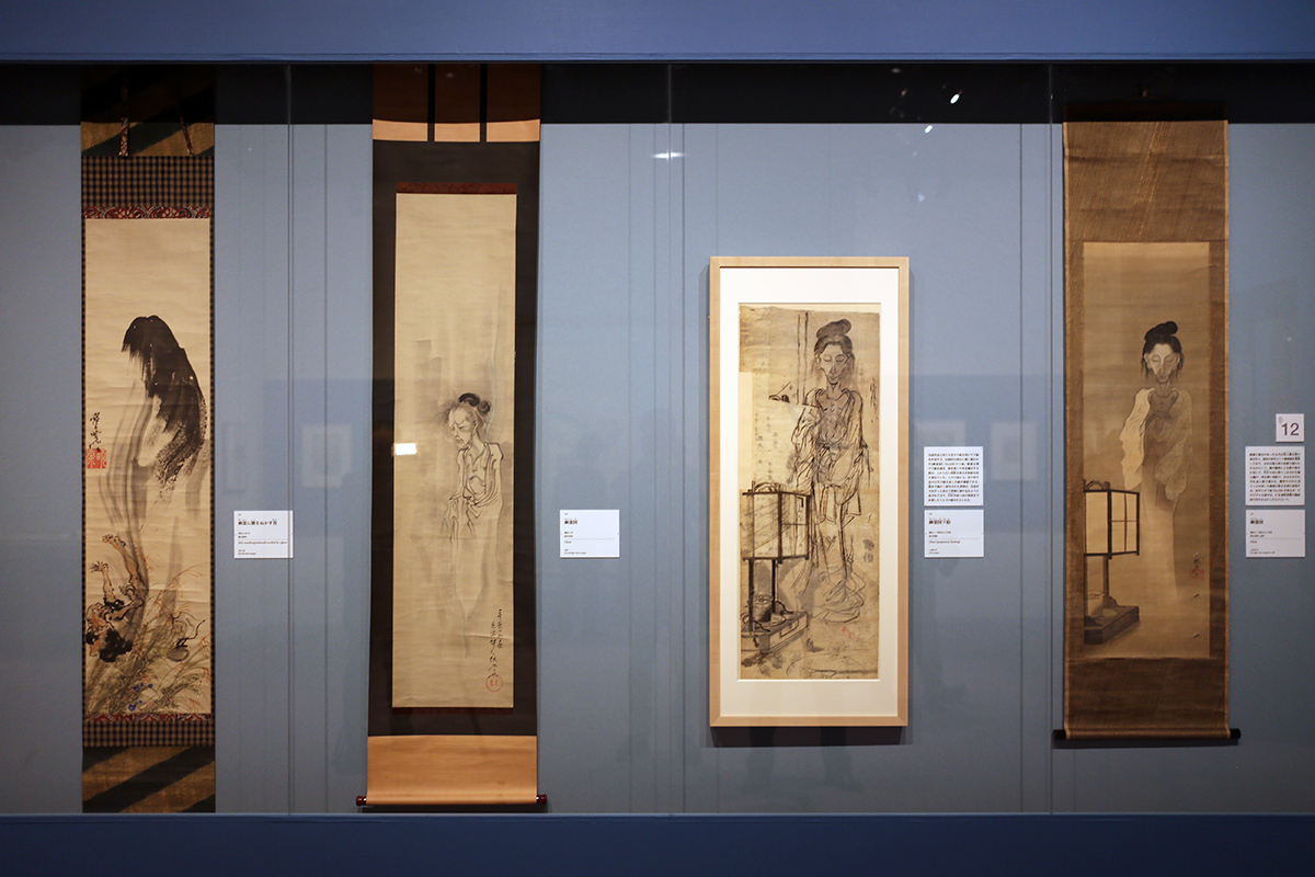(左から)河鍋暁斎《幽霊に腰をぬかす男》明治4-22(1871-89)年 / 河鍋暁斎《幽霊図》慶応3(1867)年 / 河鍋暁斎《幽霊図下絵》慶応4/明治元-3(1868-70)年頃 / 河鍋暁斎《幽霊図》慶応4/明治元-3(1868-70)年頃