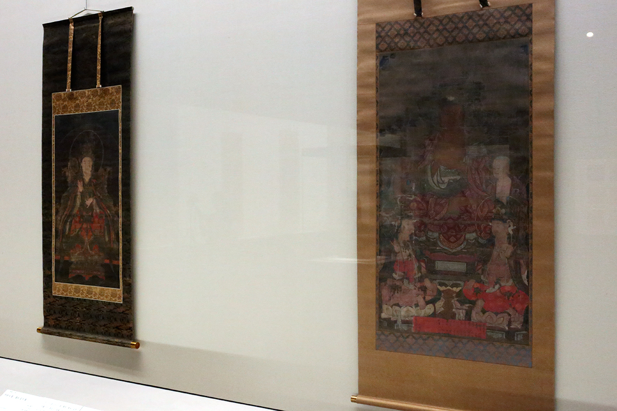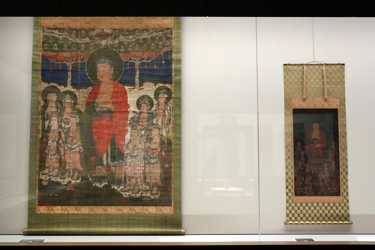 (左から)《万五千仏図》13世紀 広島・不動院蔵 / 《水月観音像》慧虚筆 13~14世紀 東京・浅草寺蔵