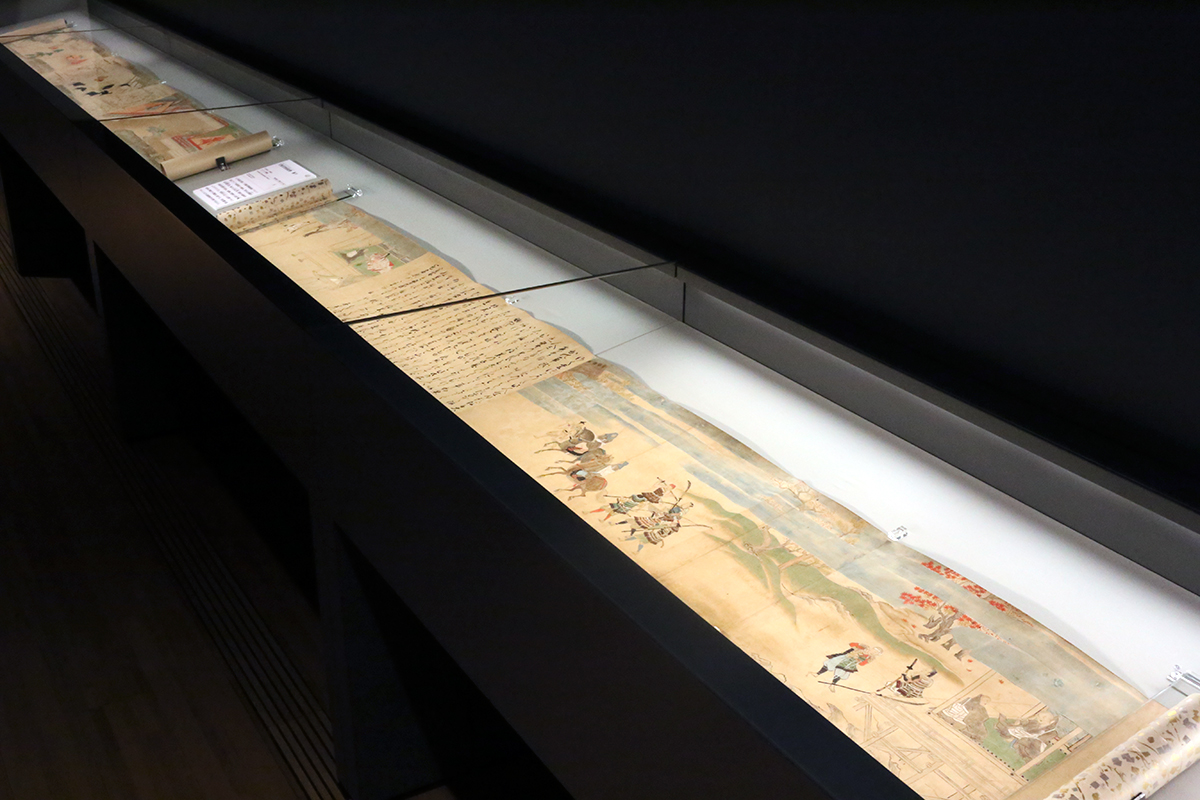 そもそも絵巻は手に取って、開きながら読み進めるもの。鑑賞者との距離が極めて近いメディアのはずですが、残念ながら今は展示ケースの中で眺めるしかありません。