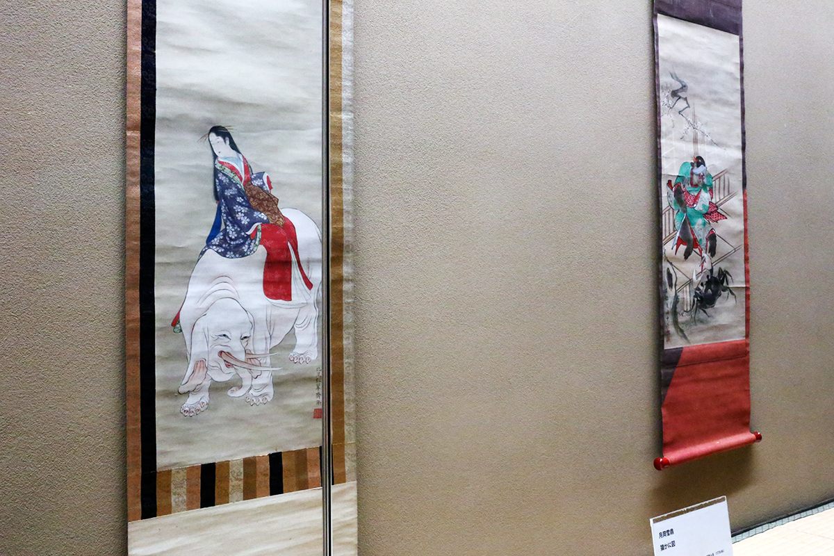 (左から)北尾重政画/真巌賛《見立普賢菩薩図》 / 月岡雪鼎《猿かに図》