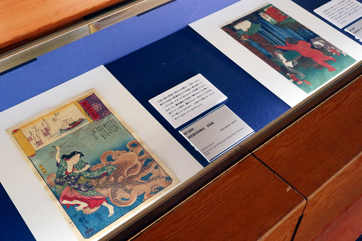 (左から)歌川国芳《源氏雲浮世画合 玉取蜑》 / 歌川国芳《木曽街道六十九次之内 望月 怪童丸》