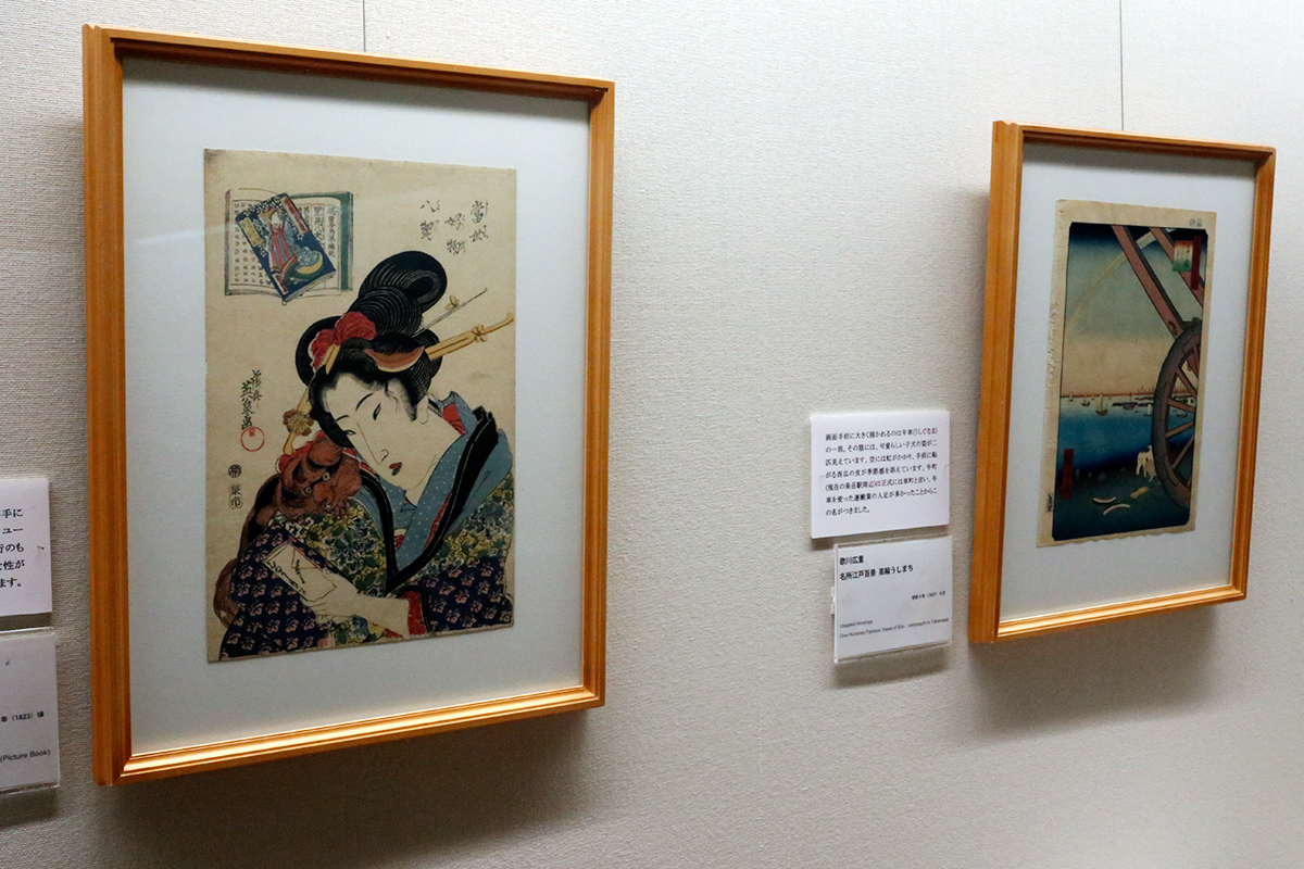 (左から)渓斎英泉《当世好物八契 草双紙》 / 歌川広重《名所江戸百景 高輪うしまち》