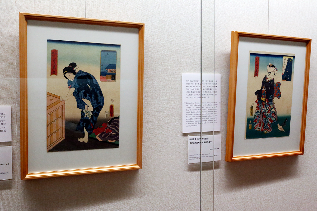 (左から)歌川国貞(三代歌川豊国)《江戸名所百人美女 東本願寺》 / 歌川国貞(三代歌川豊国)《江戸名所百人美女 薬けんぼり》