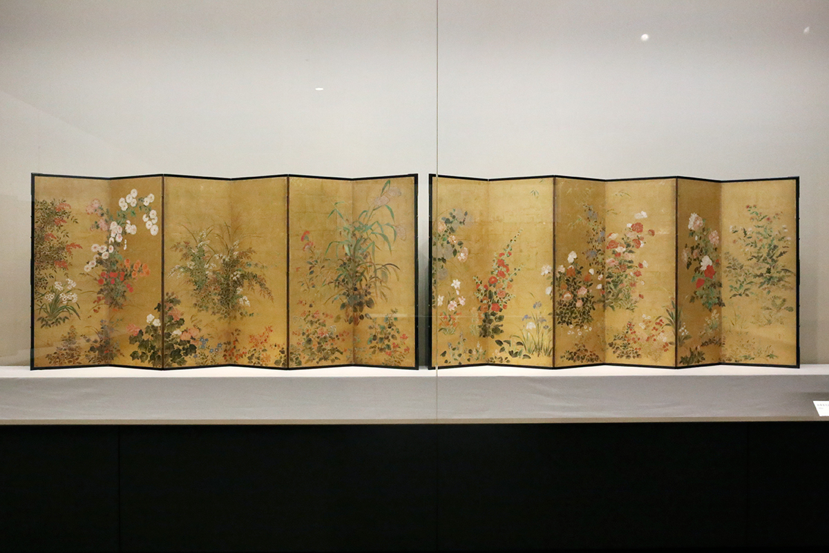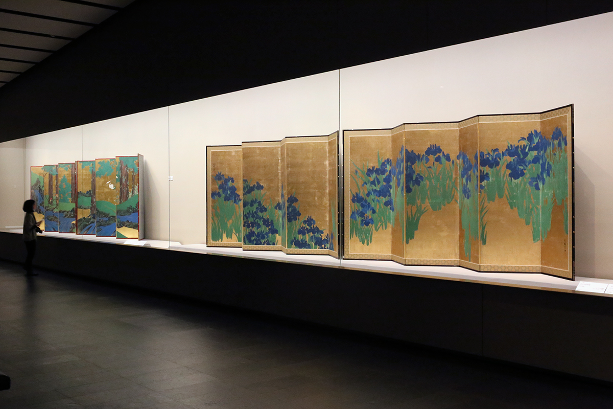 (左奥から)《夏秋渓流図屏風》鈴木其一筆 / 国宝《燕子花図屏風》尾形光琳筆