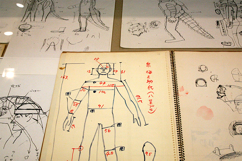 怪獣造形用の採寸図。泉梅之助は怪獣役を務めたスーツアクター