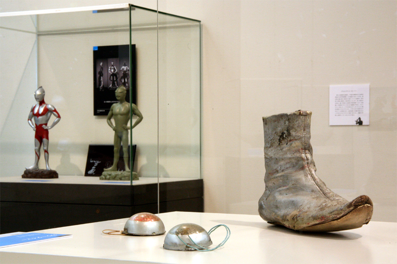 ウルトラセブンのブーツとカラータイマー。奥は佐々木明によるひな形
