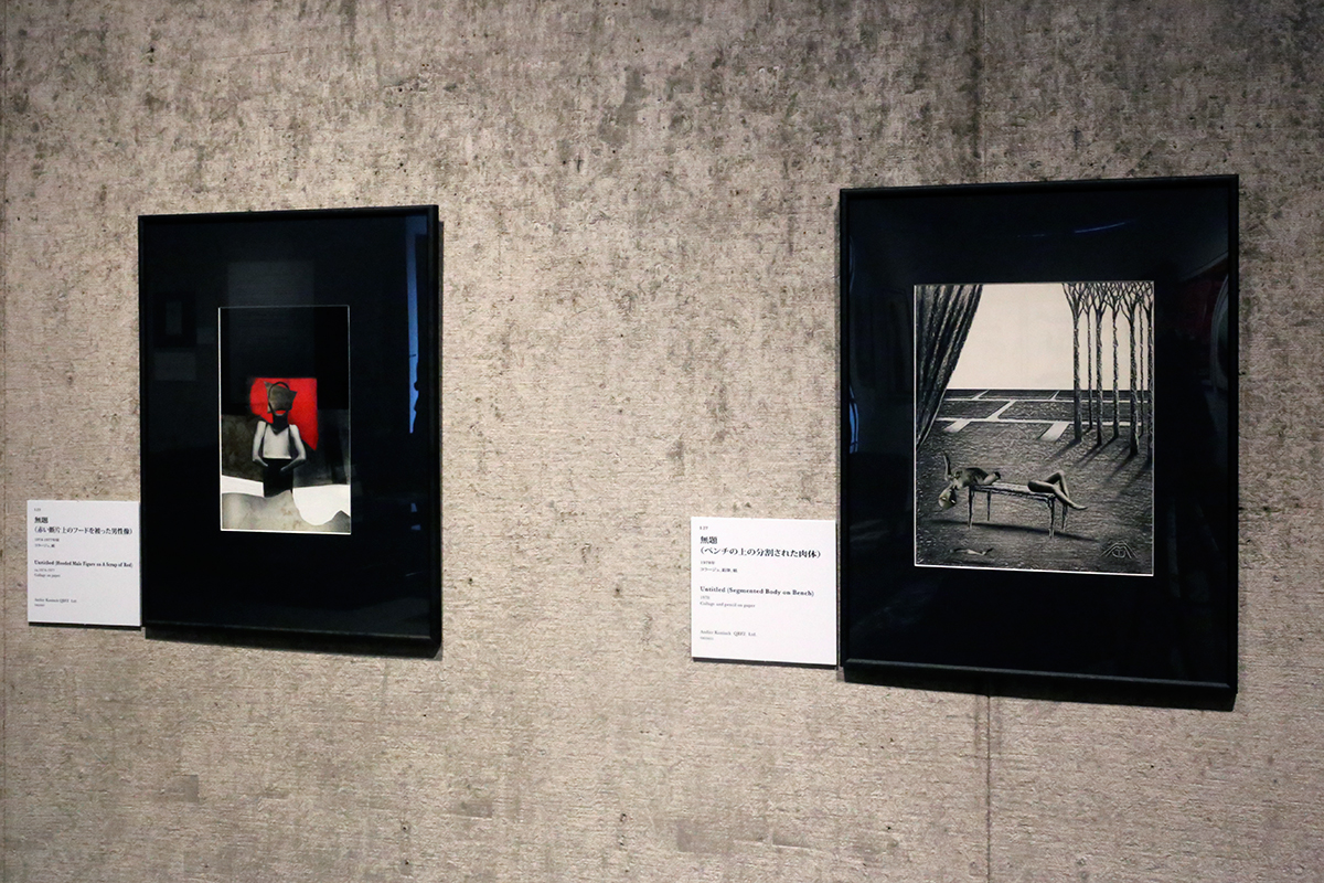 (左から)《無題(赤い断片上のフードを被った男性像)》 / 《無題(ベンチの上の分割された肉体)》