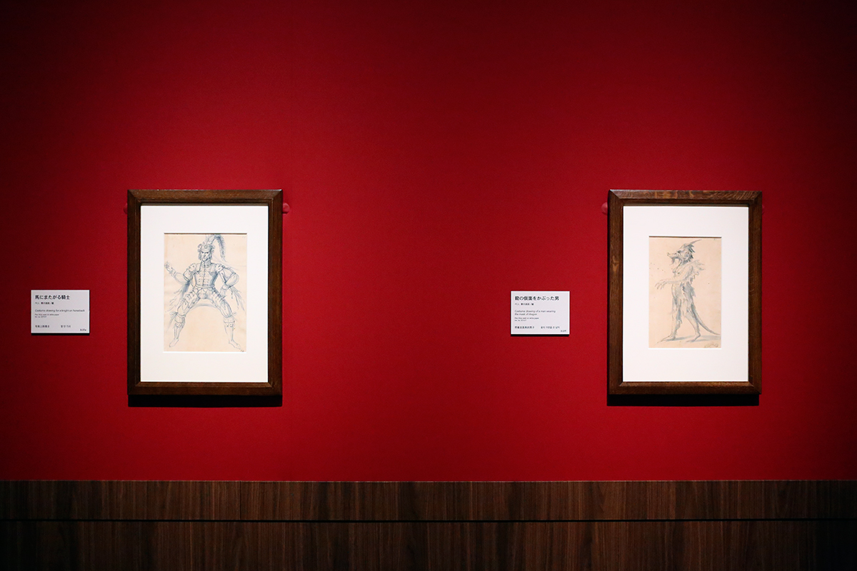 ジュゼッペ・アルチンボルド《ルドルフ2世に献じられた馬上試合の装飾デザイン集》1565年 フィレンツェ、ウフィツィ美術館 素描版画室蔵 (左から)「馬にまたがる騎士」 / 「龍の仮面をかぶった男」