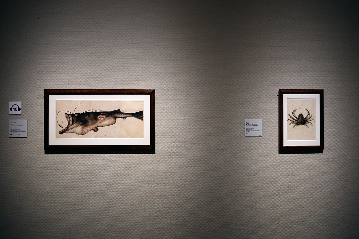 (左から)《アンコウ》16世紀半ば フィレンツェ、ウフィツィ美術館 素描版画室蔵 / 《カニ》16世紀半ば フィレンツェ、ウフィツィ美術館 素描版画室蔵