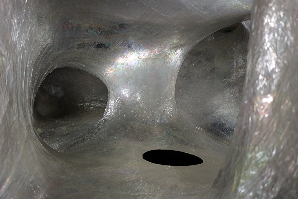 石上純也インパクトが強いのが、ヌーメン/フォー・ユースの作品。FRPで作られたオブジェのように見えますが、なんと素材は透明の粘着テープ。総延長16,200mのテープが使われています。