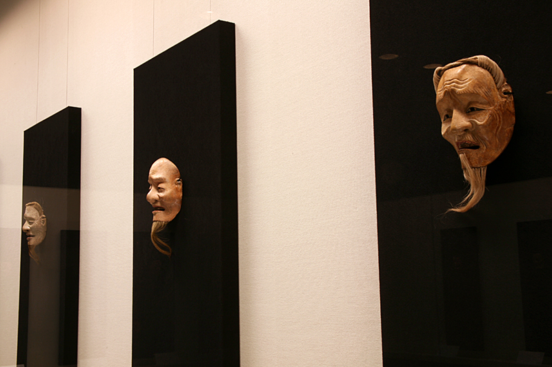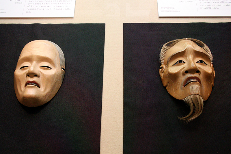 筆者イチオシは、女面「孫次郎(オモカゲ)」。古くから名高い女面の白眉で、若くして亡くなった妻の面影を面に写したという伝承が、その名の由来になっています。下から見ると遠くを見つめるような表情に、上から見るとやや吊り目になって妖艶な表情に見える、不思議な美しさを秘めた面です。