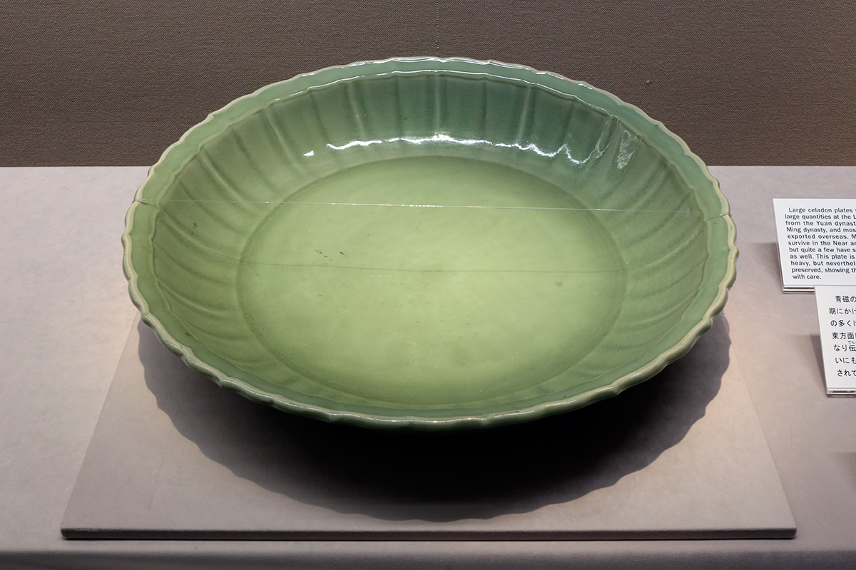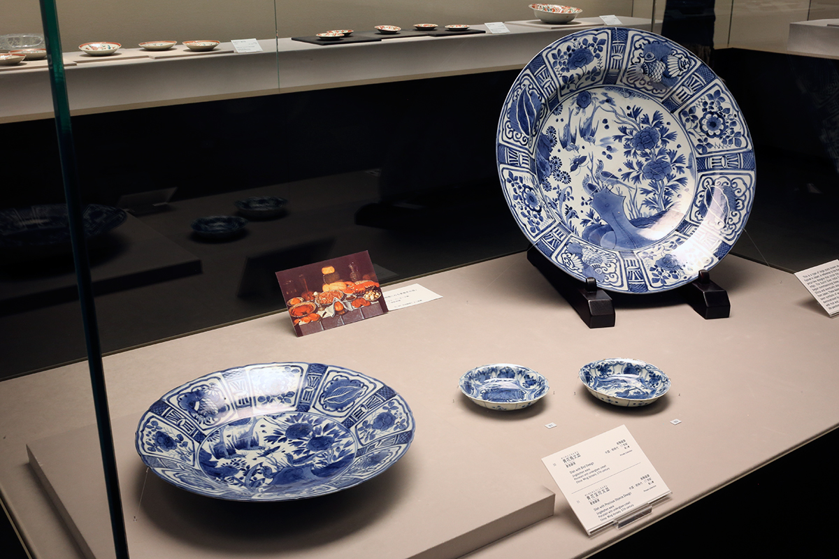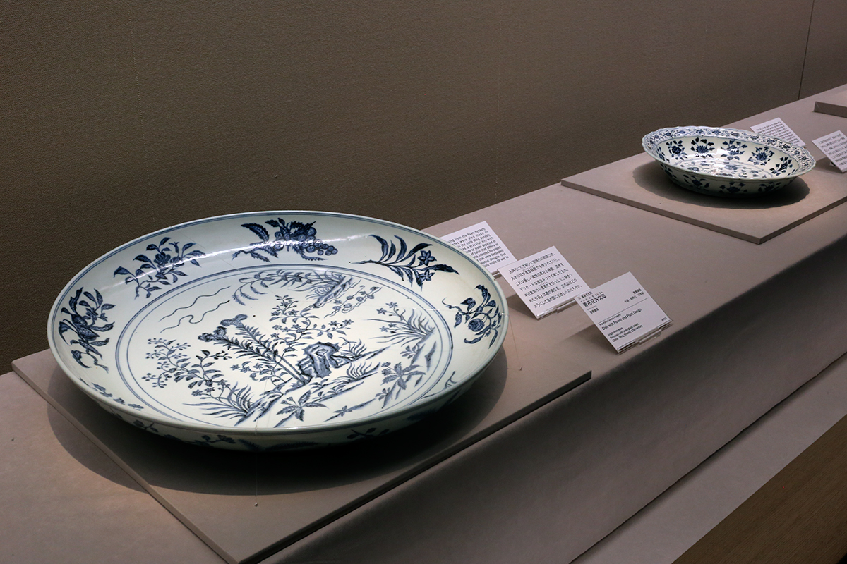 (左手前から)重要文化財《青花花卉文皿》景徳鎮窯 明時代 / 《青花花唐草文皿》景徳鎮窯 明時代