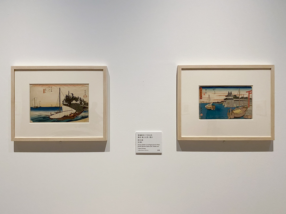 東海道を題材にした浮世絵も数多く生まれ、各宿には名勝のほか、美味しい食べ物も描かれました。府中の安倍川餅、桑名の蛤、水口のかんぴょうと、その地ならでは名物は、旅の楽しみにもなりました。