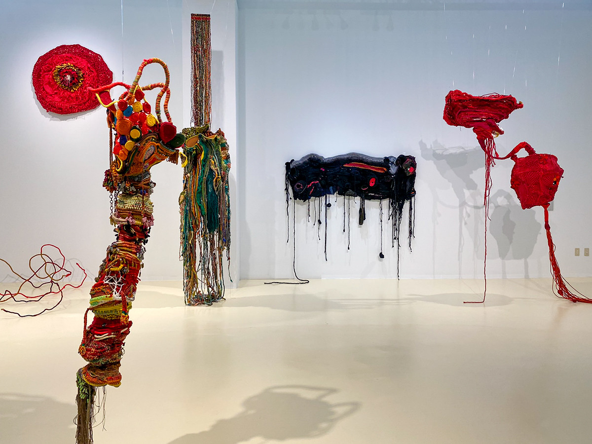 台湾出身のアリュアーイ・プリダン(武玉玲 1971-)、ルーツは台湾原住民であるパイワン族の貴族の家系です。身近にあった部族の伝統衣装を発想源に、鮮やかな布製の作品を制作。台湾外では初の発表となる今回は、大きな作品が壁面を飾ります。