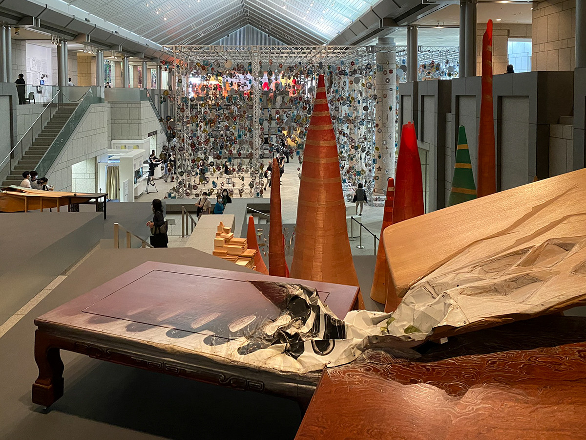 ヨコハマトリエンナーレ2020展示風景より ニック・ケイヴ《回転する森》2020