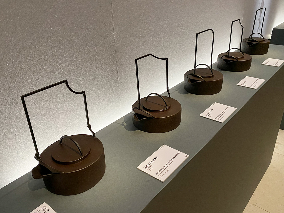 坂井直樹(1973-)の鉄瓶は、直線的な把手が印象的。現代風のフォルムですが、細い部分から大きなパーツまで、すべて金属を叩いて形をつくる鍛造(たんぞう)で制作されています。