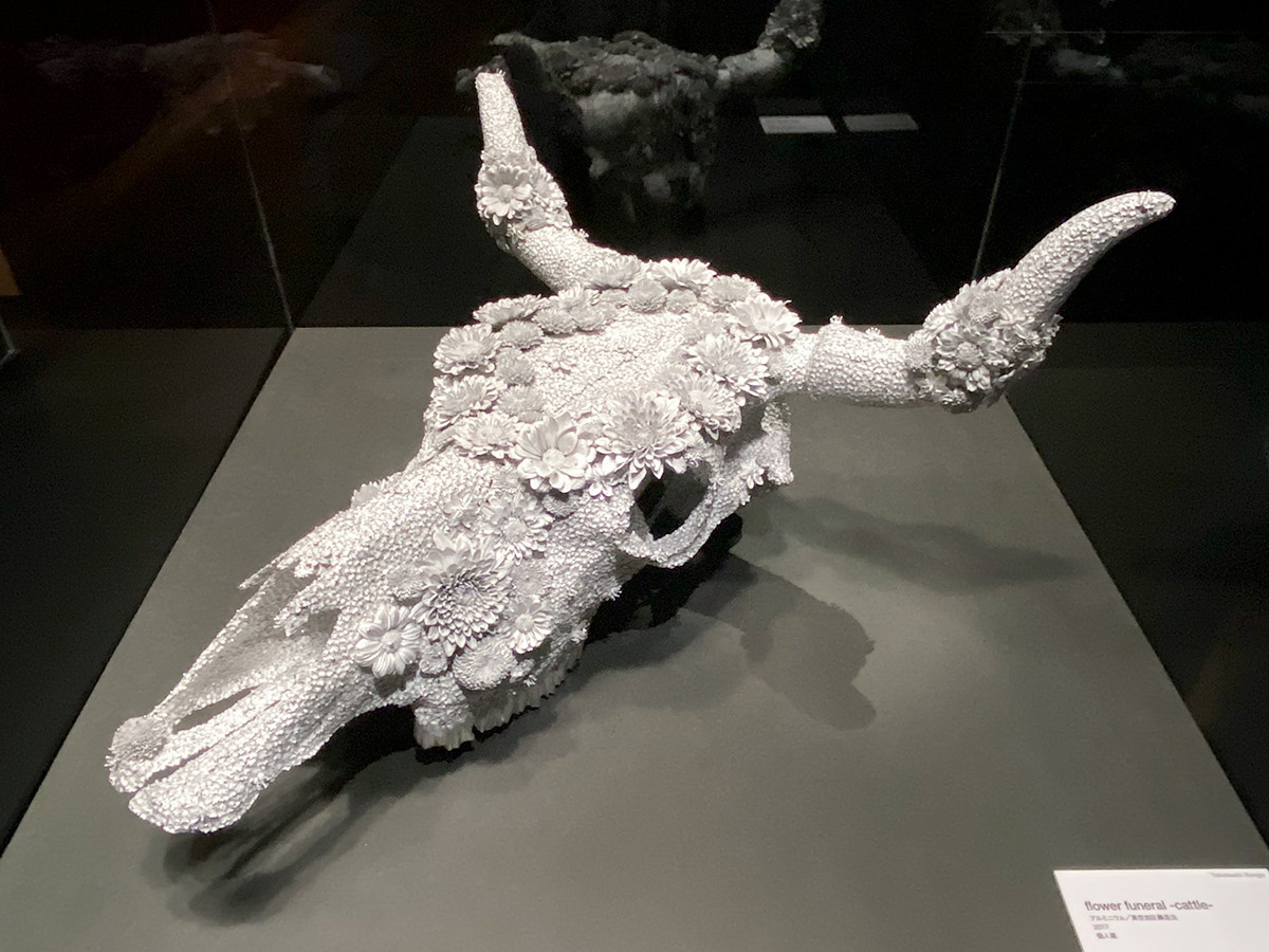 髙橋賢悟(1982-)の作品は、アルミの鋳造。単に型に流し込むのではなく、真空加圧鋳造という特殊な技法により、金属で花びらの厚さを実現しました。その作品は「驚異の超絶技巧! 明治工芸から現代アートへ」展で、全国巡回しています。