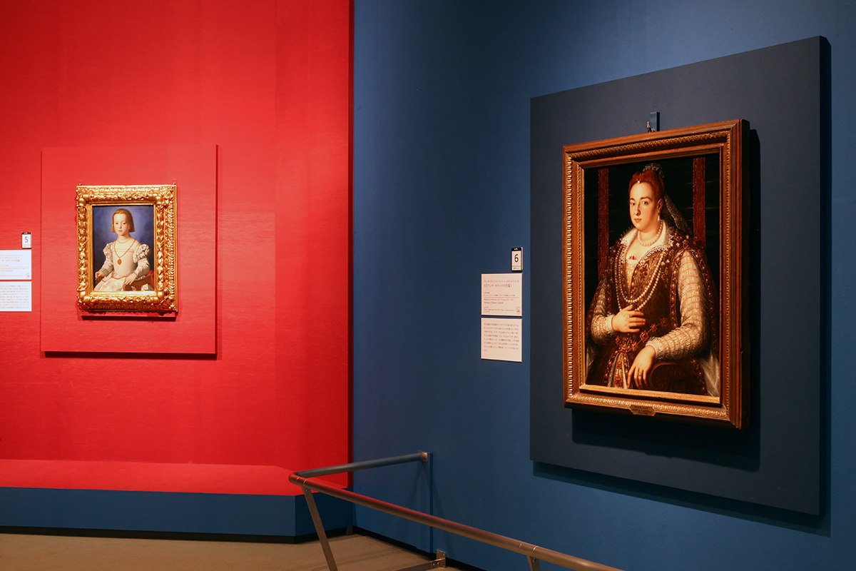 (左から)ブロンズィーノ《ビア・デ・メディチの肖像》フィレンツェ、ウフィツィ美術館 / アレッサンドロ・アッローリの工房《ビアンカ・カペッロの肖像》フィレンツェ、ウフィツィ美術館