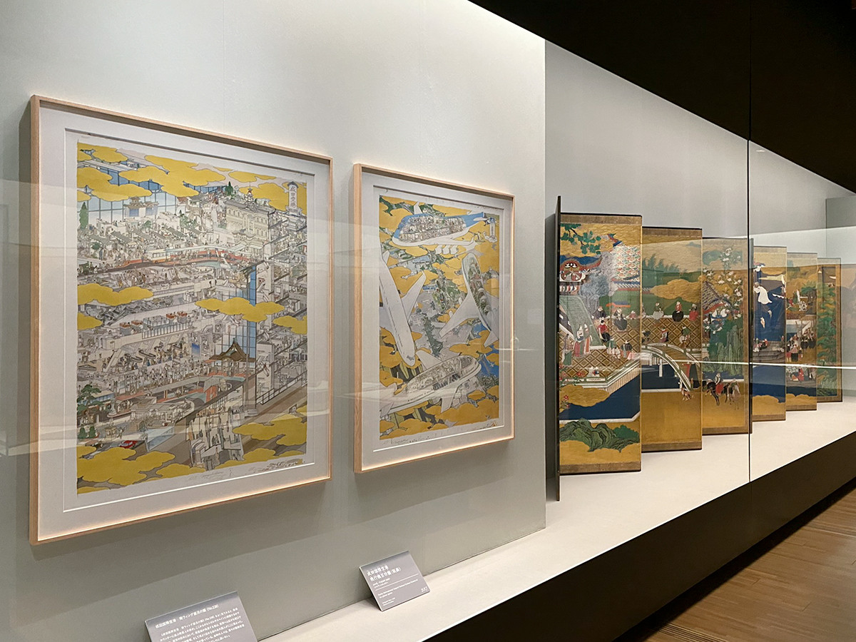 このコーナーには、山口晃さんが描いた成田空港の絵も。現代の国際空港を、近世における南蛮貿易の港に見立てています。