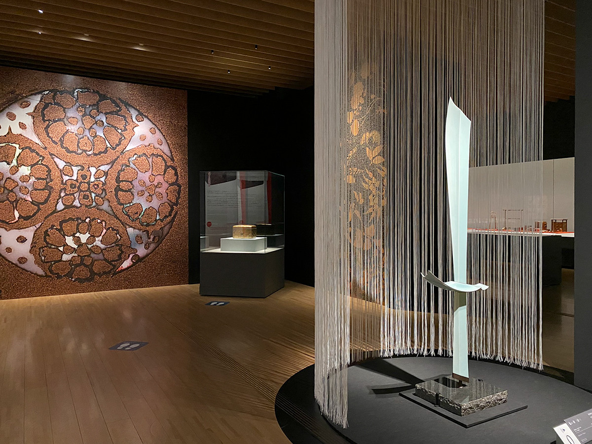 展覧会は、リニューアル記念の第一弾。館蔵品の中から生活を彩ってきた優品をセレクトしたほか、サントリー美術館の新たなこころみとして、古美術に造詣の深い4人の現代作家による作品が、伝統美術と並べて紹介されています。