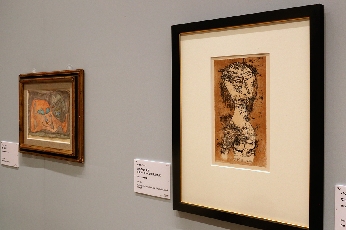 (左から)パウル・クレー《赤い鳥の話》1935年 宮城県美術館 / パウル・クレー《内なる光の聖女(『新ヨーロッパ版画集』第1集)》1921年 宮城県美術館