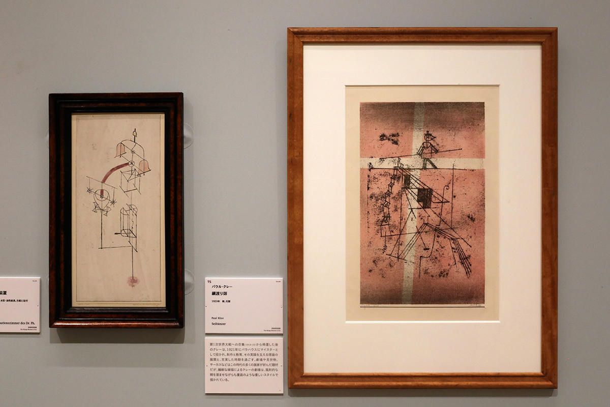 (左から)パウル・クレー《Ph博士の診察室装置》1922年 宮城県美術館 / パウル・クレー《綱渡り師》1923年 宮城県美術館