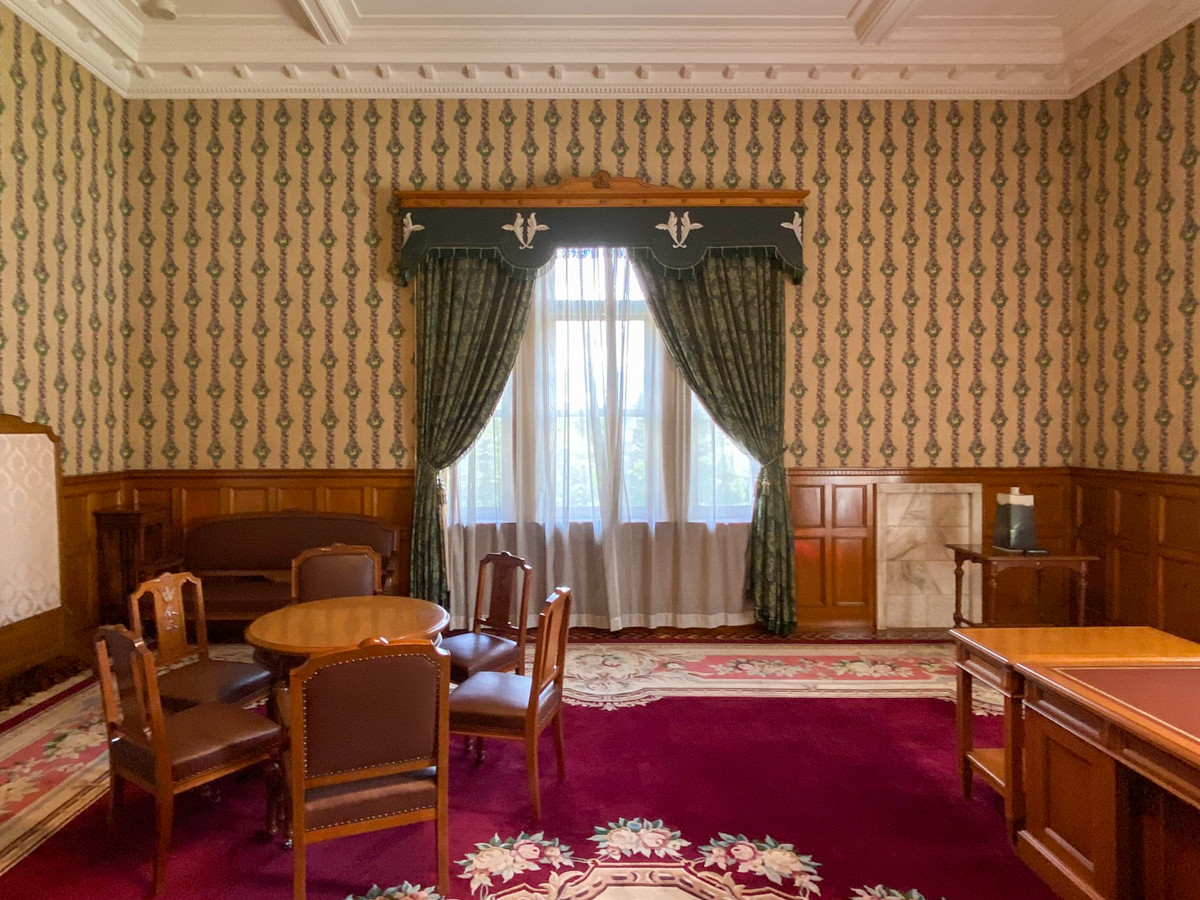 こちらは知事室。皇族や国の高官が来県した際に、控室などとして使われていました。