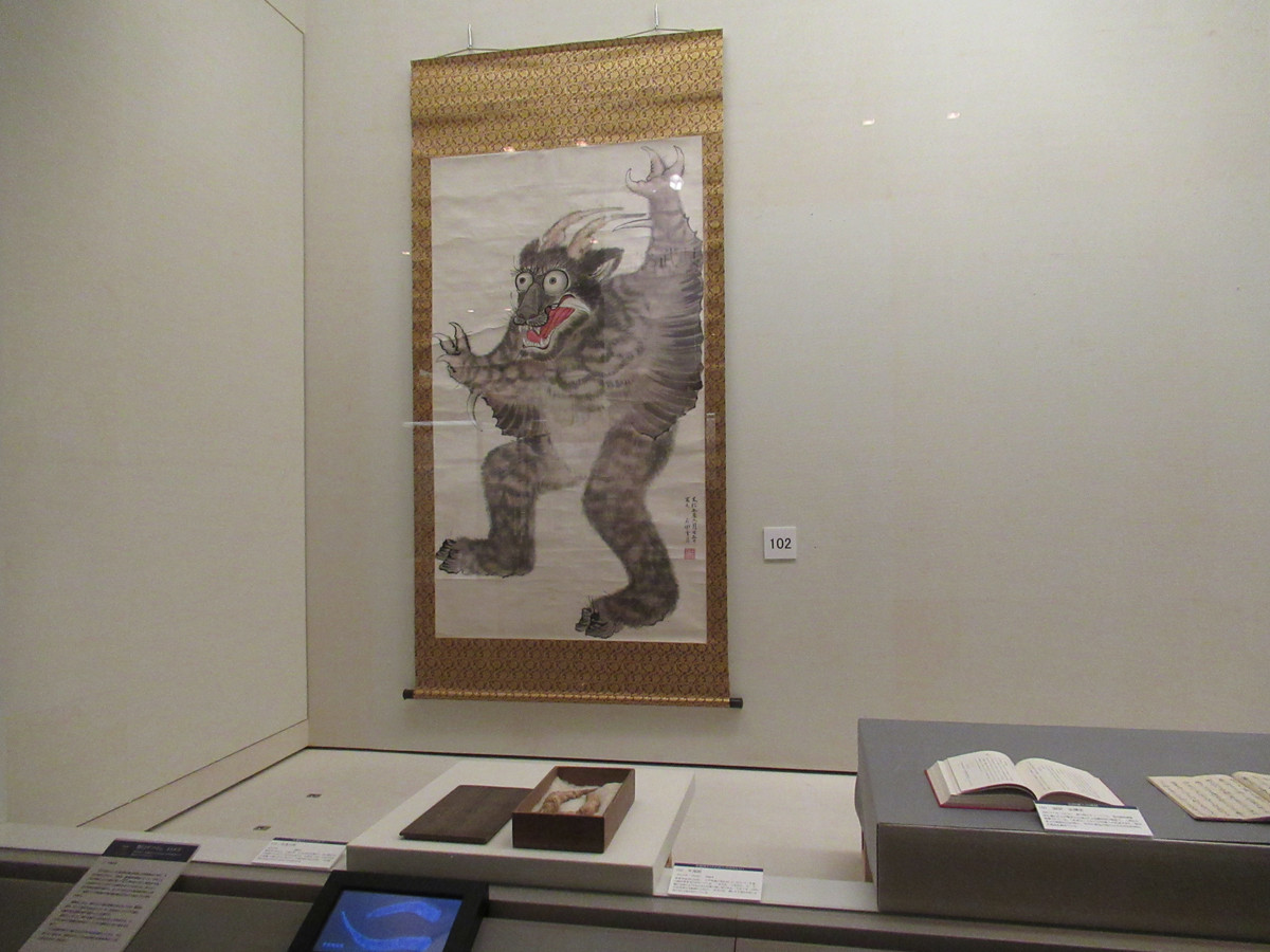 また、ここでは山田蔵人が使ったと伝わる大きな甲冑と、根来寺に伝来した牛鬼の絵画が展示されています。牛鬼とは根来寺近辺に出没したと伝わる伝説上の生物で、山田蔵人がこの牛鬼を退治したという伝説があります。