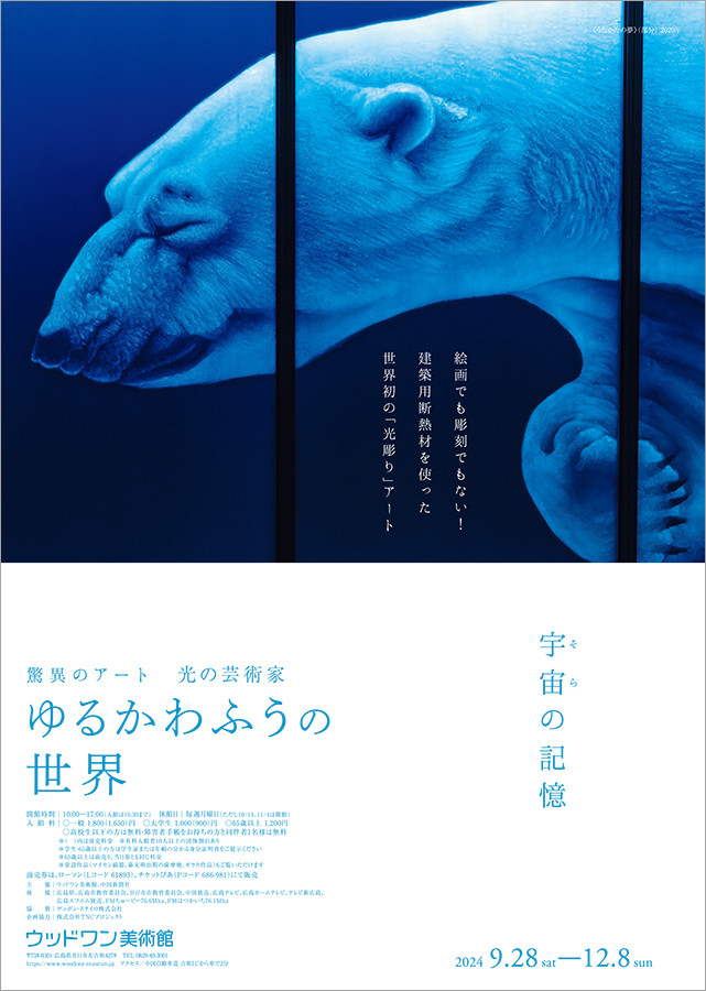 建築用の発泡断熱材「スタイロフォーム」を削り、裏面から照明を当てることで動物や風景、人物などを繊細に表すオリジナル技法「光彫り」で注目を集める美術家ゆるかわふうによる、中国地方初の大規模展。ウッドワン美術館「驚異のアート 光の芸術家 ゆるかわふうの世界 宇宙(そら)の記憶」では、同館所蔵作品のオマージュである新作も発表されます。