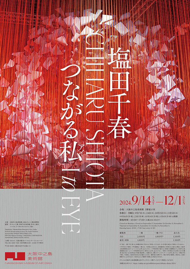 大阪中之島美術館では、塩田千春の大阪での16年ぶりの個展を開催します。「生と死」をテーマに、感染症後の「他者とのつながり」を探求。「私/I」、「目/eye」、「愛/ai」の3つに【アイ】を視点に、インスタレーションや絵画、映像など多様な作品を展開。「塩田千春 つながる私」は、9月14日から。