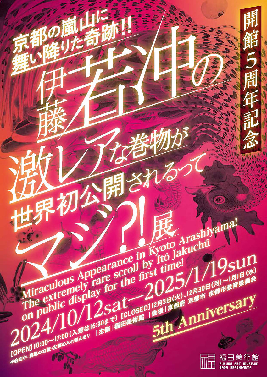 福田美術館「開館5周年記念 京都の嵐山に舞い降りた奇跡!! 伊藤若冲の激レアな巻物が世界初公開されるってマジ?!」