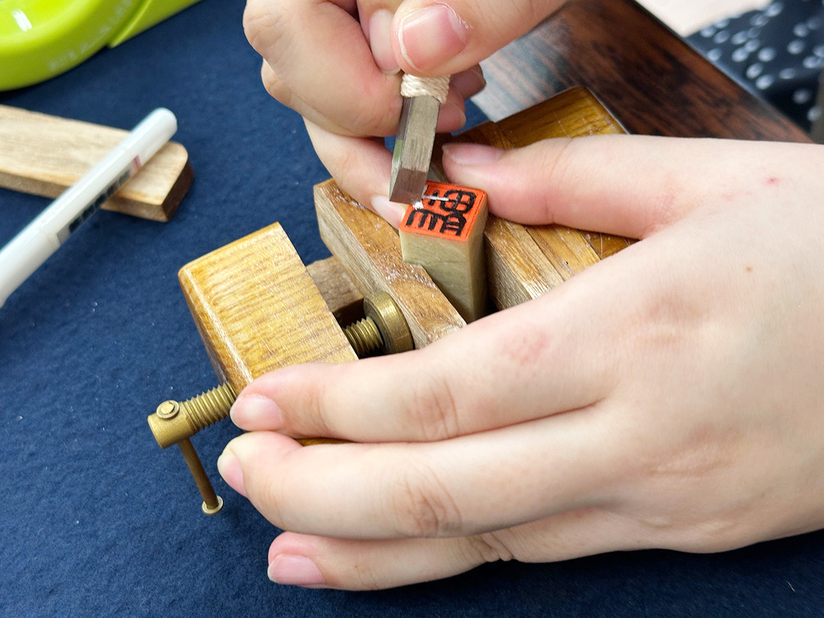 実際に石を彫って、自分だけのオリジナルの印章を作る事ができる、本格的なプログラム。もちろん、作った印章は持って帰ることができます。