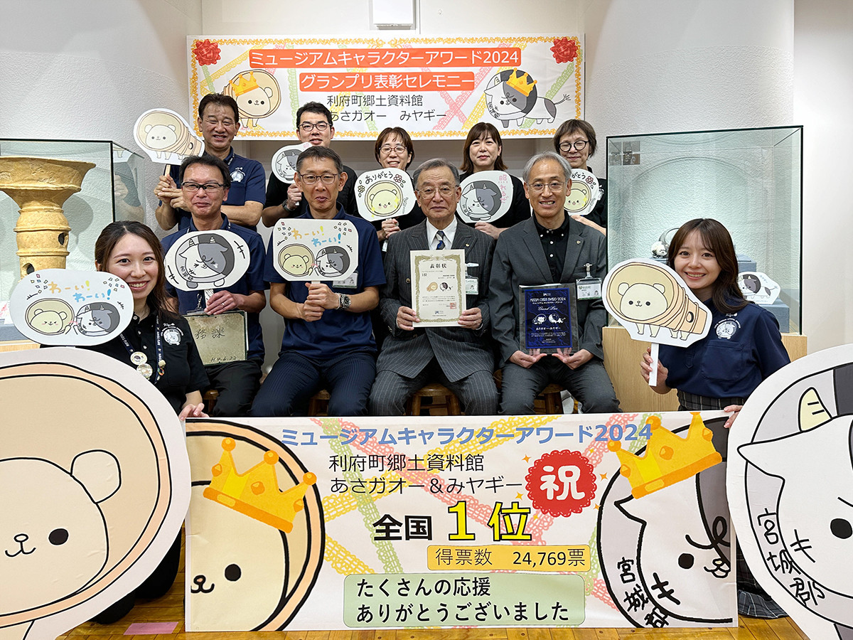2024年のミュージアムキャラクターアワードで栄冠に輝いたのは、利府町郷土資料館のキャラクター「あさガオーとみヤギー」。休館中にもかかわらず2位となり話題を呼んだ2023年から得票数を倍以上に伸ばし、ついに頂点に立ちました。
