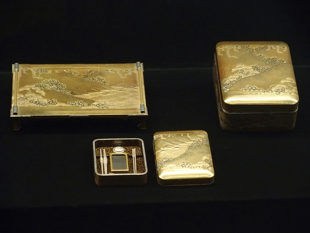 常設展 漆工より、《花乃山蒔絵文台・硯箱・料紙箱(ミニチュア)》土方永耕