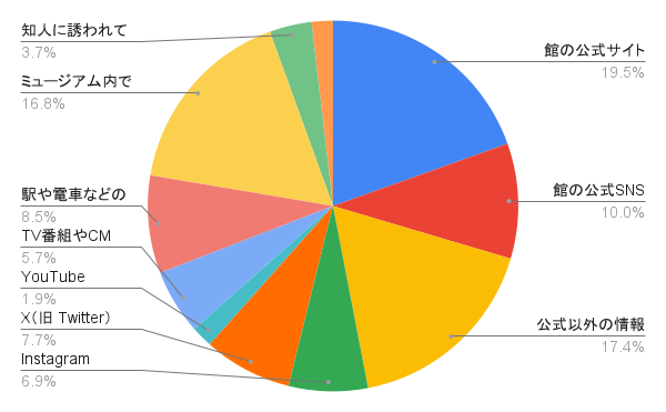 「必ず調べる」と「たまに調べる」を合わせると、全体の約9割以上が事前に情報を収集しており、ミュージアム訪問前のネット検索は完全に定着しています。限られた時間と費用で確実に満足したいという「タイパ」意識の表れであり、事前に展示内容を詳しく精査してから足を運ぶスタイルが主流となっています。